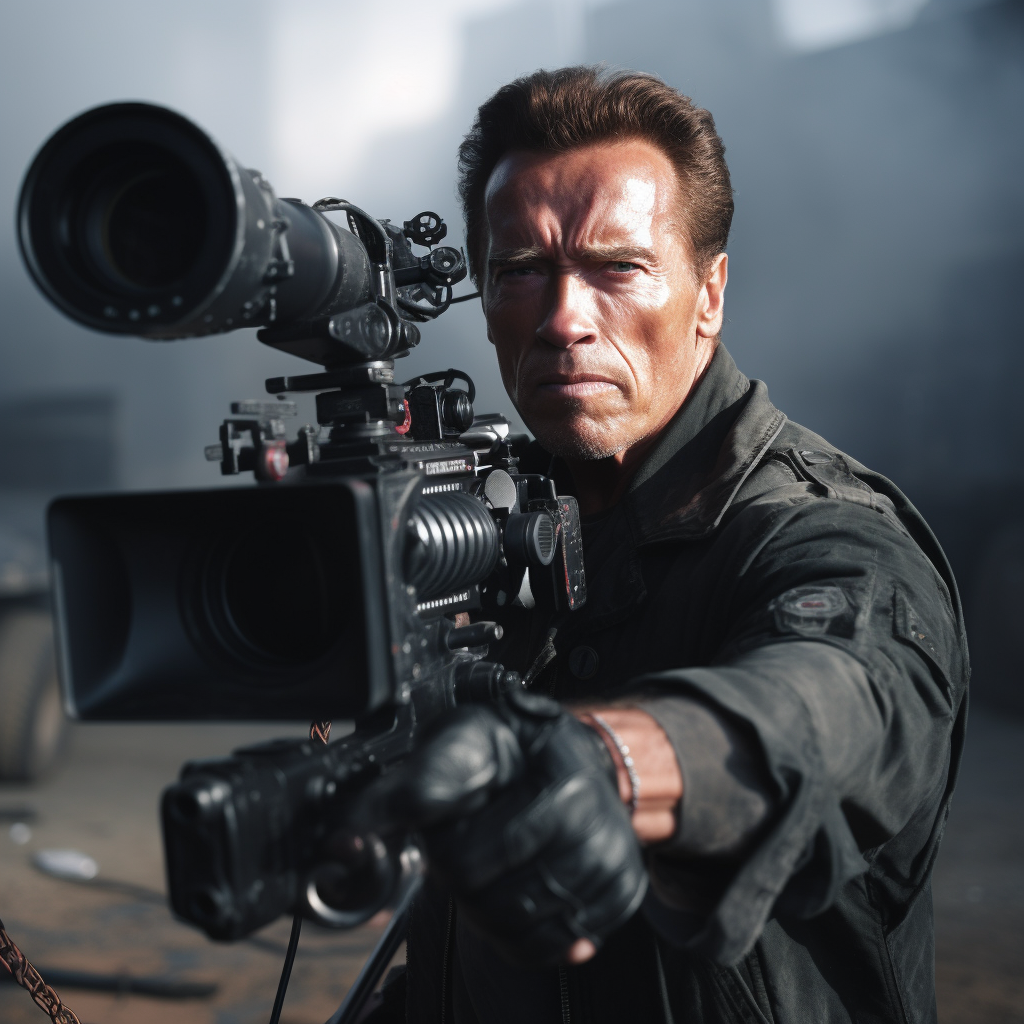 ^Terminaattori ampuu kameralla. Kuvan generointiin Midjourneylla meni noin yksi minuutti.