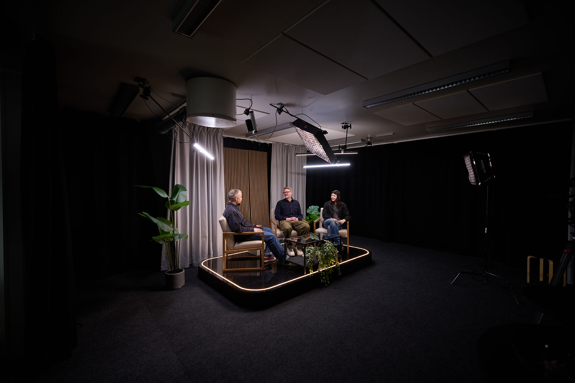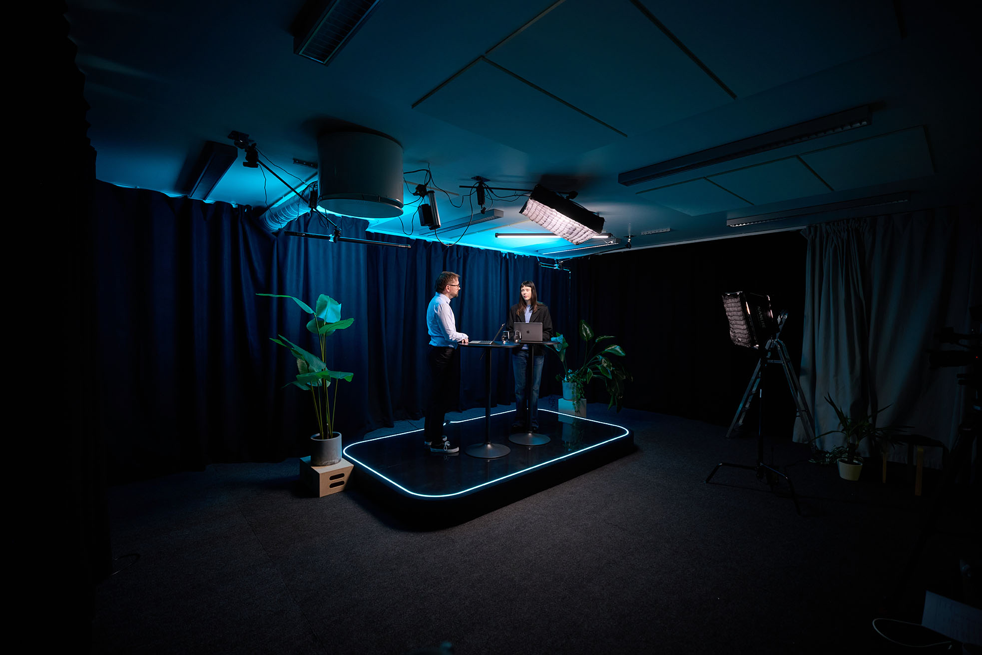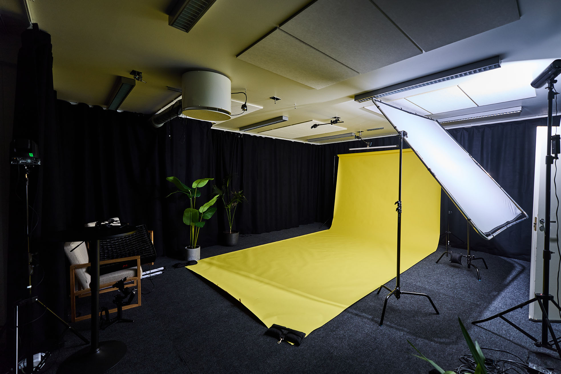 Studiota voidaan muokata taustoilla, valaistuksella ja kalustejärjestelyillä, jotta se sopii juuri teidän tarpeisiinne.